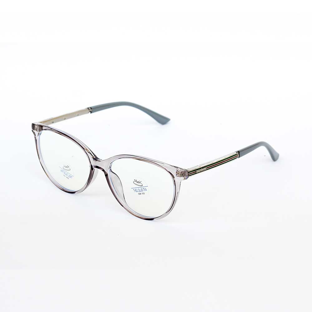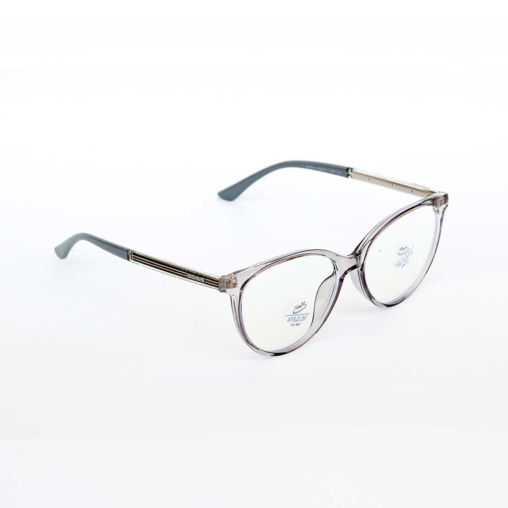 | NAME: GUCCI, MODEL NO: 82541, SIZE: 53-17-140, FRAME COLOUR: CRYSTAL GREY, LENSE COLOUR: TRANSPARENT + BLUE CUT, MATERIAL: TR, CATEGORY: WOMEN |